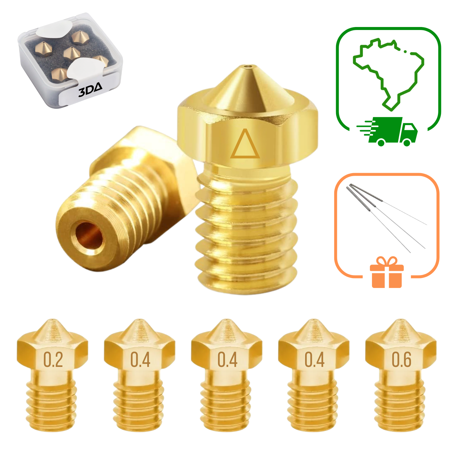 ..:: KIT 5 BICOS E3D V6 .2 .4 .6 / 1.75 MM 3D UPPER NOZZLE - KIT 5 BICOS LATÃO 1.75 / 0.2 a 0.6 MM SAÍDA ::..