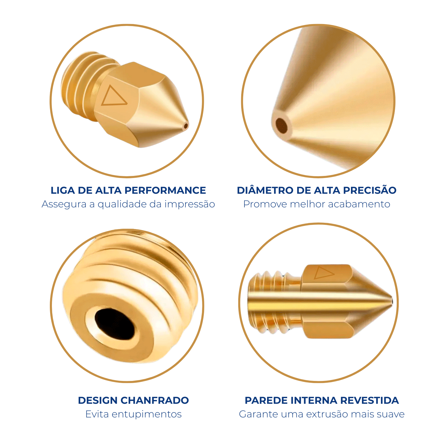 Bicos de alta performance para impressão 3D. Produzido com usinagem de precisão, os bicos da 3DUPPER se destacam dos genéricos por agregar alta condutividade térmica, extrusão estável e acabamento impecável nas suas peças.